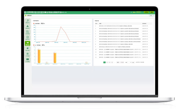 系统集风险分布、隐患情况、应急管理、体系文件、预警预告、基本信息、工作情况、学习园地、物联网管理等功能于一体,旨在构建标准化、规范化、便捷化的管理流程,引导企业自主开展安全管理工作由被动安全向主动安全转变,积极落实企业安全生产主体责任。